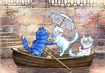 Вот они — шкодливые и романтичные, синие коты худржницы Ирины Зенюк. Реальная кошачья жизнь переплетается с фантастическими картинами кошачьего бытия. Фантазия художника уводит зрителя в причудливый мир синих котов, который, однак