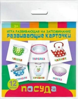 Серия развивающих игр на запоминание «Развивающие карточки» (3+) Занятия с карточками развивают у ребёнка интеллект, зрительную память, помогают научиться быстро запоминать названия предметов и написание слов. С наборами развивающих карточек ребёнок не только освоит названия цветов, форм, морских жителей, времён года, профессий, видов спорта, но и научится их различать и узнавать, а также запомнит основы безопасного поведения дома и на улице. Индивидуальная ПЭТ-упаковка.