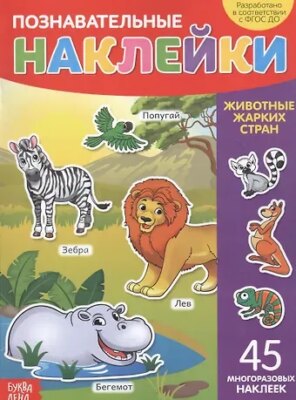 Познавательные наклейки. Животные жарких стран. 45 многоразовых наклеек