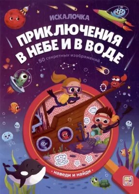 Серия «Искалочка» — это занимательная книга с лупой, с помощью которой можно искать предметы на специальных зашифрованных участках страниц. Книга «Приключения в небе и в воде» позволит малышу отправить в завораживающий полёт к далёким звёздам и нырнуть в морские глубины! Рассматривая картинки, ребёнок сможет выполнять задания и находить новые детали с помощью красной лупы. Задания развивают внимательность, логику, помогают потренировать счёт. Развиваться весело вместе с Malamalama!