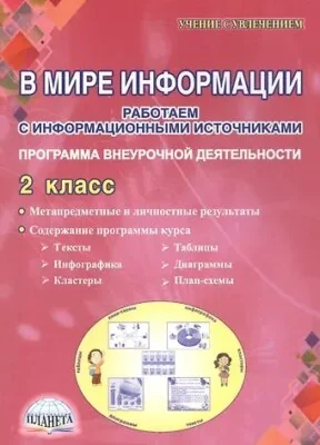 Данное методическое пособие содержит программу внеурочной деятельности «В мире информации. Работаем с информационными источниками» для учащихся второго класса общеобразовательной начальной школы. Структура сборника включает подробную рабочую программу курса: пояснительную записку, содержание программы, планируемые результаты освоения программы, тематическое планирование с указанием формируемых на каждом занятии умений. Также в книге даны подробные методические комментарии к каждому занятию. Содержание занятий позволит учителю успешно формировать информационную грамотность обучающихся. Данное методическое пособие выпускается в комплекте с рабочей тетрадью для учащихся. Все задания в тетради составлены с учетом ФГОС НОО и направлены на формирование информационной компетентности второклассников. Книга предназначена для учителей начальных классов, заместителей директоров по учебно-воспитательной работе, методистов, студентов педагогических колледжей и вузов, магистрантов, слушателей курсов повышения квалификации.