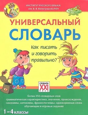 Универсальный словарь : Как писать и говорить правильно? : 1-4-й классы. Более 350 словарных слов, грамматическая характеристика, значение, происхождение, синонимы, антонимы, фразеологизмы, однокоренные слова, обучающие и игровые задания.