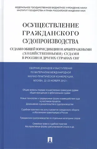 Сборник подготовлен по материалам международной научно-практической конференции, состоявшейся 22–23 ноября 2012 г. в г. Москве. В сборнике представлены статьи участников конференции по следующим основным направлениям: общие вопросы порядка осуществления правосудия судами по гражданским делам; влияние Европейского суда по правам человека на гражданское судопроизводство России и других стран СНГ; новые технологии и традиционные формы взаимодействия суда и участников процесса; доказывание и доказательства в гражданском судопроизводстве; судебная практика и ее роль в развитии гражданского оборота и обеспечении правопорядка в России; гражданское судопроизводство по отдельным категориям споров. В сборнике представлены также статьи о судебной практике по семейно–правовым спорам и альтернативным формам урегулирования разногласий сторон.