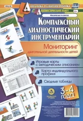 Предлагаемый полный диагностический пакет для проведения педагогического мониторинга по результатам освоения детьми 3-4 лет образовательной области «Физическое развитие» включает диагностический инструментарий (15 сводных диагностических карт, 24 дидактических цветных карты), позволяющий комплексно, целостно организовывать диагностическую деятельность в начале, середине (контрольный срез) и конце учебного года.