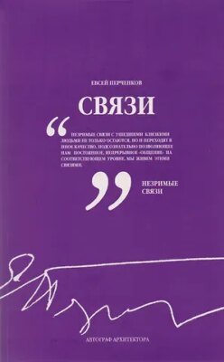 Настоящая книга представляет собой продолжение серии «Автограф архитектора», объединяющей избранные тексты, воспоминания, статьи и критические заметки известных советских архитекторов. «Связи» — автобиографическое издание Евсея Владимировича Перченкова, признанного мастера архитектуры курортных сооружений, на счету которого не один десяток реализованных проектов санаториев, домов отдыха и горнолыжных баз. На страницах книги архитектор делится своими воспоминаниями из детства, связанными с жизнью в большой дружной еврейской семье, переживаниями Великой Отечественной войны, размышлениями о предназначении и художественном таланте, учёбе в МАрхИ, первых командировках и продолжительной работе в «ЦНИИЭП курортных зданий и туристских комплексов».