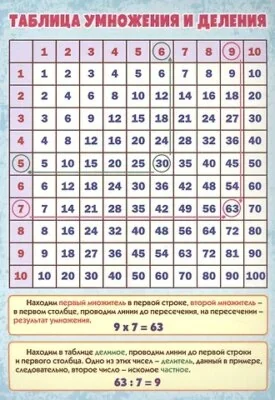 Учебный плакат «Таблица умножения и деления», А4