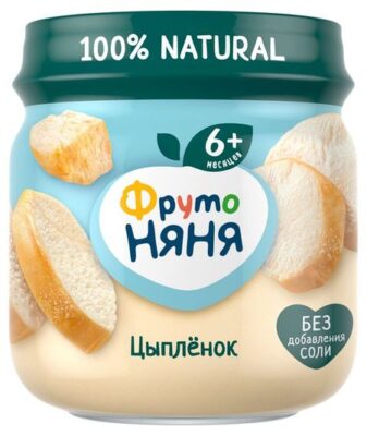 Пюре ФрутоНяня из мяса цыплят важный источник натурального белка и незаменимых для малышей от 6 месяцев аминокислот, необходимых для активного и здорового роста.