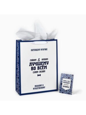 Пакет ламинированный двухсторонний «Лучшему», с тишью и открыткой, L 40 х 31 х 11.5. Дарите Счастье