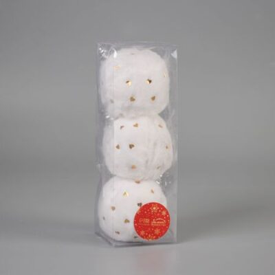 Ёлочные игрушки, шары новогодние , пластик, набор d-8 см, 3 шт "Нежность" сердца, белый. Зимнее волшебство
