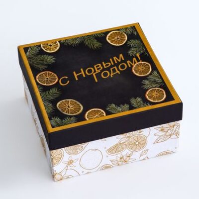Коробка квадратная «Апельсины зимние» , 19×19×10 см. Эта прекрасная новогодняя коробка, размеры которой составляют 19 × 19 × 10 см, является идеальным