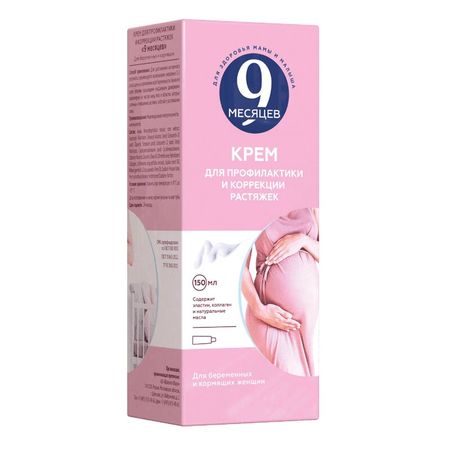 Крем 9 месяцев для профилактики растяжек предназначен для профилактики и коррекции растяжек у беременных и кормящих женщин. Крем разработан специально для ежедневного ухода за проблемными участками тела (грудь, живот, бедра), склонными к образованию растяжек во время беременности, а также при их наличии после родов. При постоянном применении средство предотвращает образование новых и способствует уменьшению имеющихся растяжек (стрий) благодаря особому составу крема.