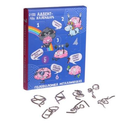 Адвент — календарь с металлическими головоломками «Раскачай логику», 7 шт.. Адвент-календарь с металлическими головоломками «Раскачай логику» — это увлекательный набор для любителей логических задач. В комплекте представлены различные головоломки, которые заставят размышлять, анализировать и находить нестандартные решения. Такой формат отлично подходит как для детей, так и для взрослых, ведь тренировка ума полезна в любом возрасте. <b> Особенности набора</b> <ul> <li> 7 головоломок разного типа и сложности.</li> <li> Металлические детали обеспечивают долговечность и надежность.</li> <li> Компактный формат позволяет играть в любом месте — дома, на отдыхе, в дороге.</li> </ul> <b> Развитие через игру</b> Разгадывание головоломок помогает улучшить логическое мышление, концентрацию и мелкую моторику. Каждая задача требует внимательности и терпения, что делает процесс решения особенно увлекательным. Набор головоломок — это не просто игрушка, а отличный инструмент для развития мышления и навыков решения задач.