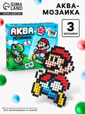 С аквамозаикой от торговой марки «Эврики» ребёнок соберёт объёмные фигурки из шариков-пикселей. Детали плотно скрепляются друг с другом. С поделками можно играть или носить с собой как брелоки.Как сделать фигуркуВыберите рисунок и поместите его под прозрачную основу.С помощью пинцета выложите цветные шарики по образцу.Наберите в бутылочку воды.Распылите воду на фигурку так, чтобы бусинки были равномерно покрыты водой.Оставьте мозаику на 30–40 минут до полного высыхания.После высыхания аккуратно снимите поделку с основы.Можете использовать получившуюся фигурку для создания оригинальных брелоков и украшений.Польза занятий с аквамозаикойИгра с мозаикой развивает мелкую моторику, цветовое восприятие и усидчивость, позволяет ребёнку проявить креативность в удивительном процессе изготовления фигурки.Подходит для детей от 4 лет.