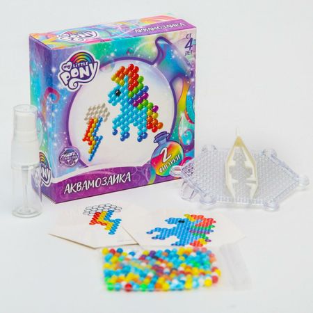 Аквамозаика «Радуга Дэш», 2 фигурки, 150 шариков, My Little Pony. С аквамозаикой «Радуга Дэш» ребенок соберет из шариков-пикселей 2 объемных фигурки из популярного мультфильма My Little Pony. С поделками можно играть или украсить интерьер. <b> Как сделать фигурку</b> <ol> <li> Выберите рисунок и поместите его под прозрачную основу.</li> <li> С помощью пинцета выложите цветные шарики по образцу.</li> <li> Наберите в бутылочку воды.</li> <li> Распылите воду на фигурку так, чтобы бусинки были равномерно покрыты водой.</li> <li> Оставьте мозаику на 30–40 минут до полного высыхания.</li> <li> После высыхания аккуратно снимите поделку с основы.</li> </ol> <b> Польза занятий с аквамозаикой</b> Игра с мозаикой развивает мелкую моторику, цветовое восприятие и усидчивость, позволяет ребенку проявить креативность в удивительном процессе изготовления фигурки. Рекмоендовано детям от 4 лет.