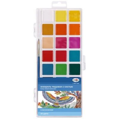 Медовая полусухая акварель серии «Классическая» разработана для использования в школе и дома. Естественные цвета акварели обучают правильному цветовосприятию окружающего мира. Краски изготовлены на основе органических пигментов и натурального связующего. Прозрачность красок, яркость и чистота цвета, разносимость и размываемость — основные характеристики акварели данной серии.Кюветы с высокими бортиками и увеличенным расстоянием между красками предназначены для удобства в работе детей. Палитра для смешивания красок расположена на крышке. Акварель легко смывается с рук и отстирывается с одежды.Объем кювет — 3,14 см3.Форма кювет — квадратная.Кисть в комплекте.