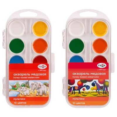 ВНИМАНИЕ. Дизайн упаковки представлен в ассортименте.Медовая акварель серии «Мультики» разработана с учетом рекомендаций педагогов. Идеально подходит для занятий рисованием в детском саду, школе и дома. Яркие чистые цвета развивают фантазию и интерес к творчеству. Акварель безопасна для детей. Удобный пластиковый пенал, крышка плотно фиксируется и служит палитрой для смешивания красок. Кюветы с высокими бортиками и увеличенным расстоянием между красками предназначены для удобства в работе детей. Акварель легко смывается с рук и отстирывается с одежды.Объем кювет — 3,5 см3.Форма кювет — круглая.