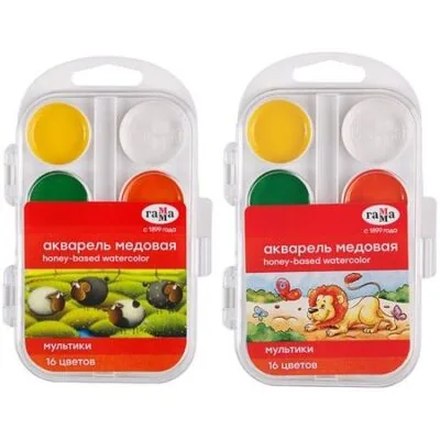 ВНИМАНИЕ. Дизайн упаковки представлен в ассортименте.Медовая акварель серии «Мультики» разработана с учетом рекомендаций педагогов. Идеально подходит для занятий рисованием в детском саду, школе и дома. Яркие чистые цвета развивают фантазию и интерес к творчеству. Акварель безопасна для детей. Удобный пластиковый пенал, крышка плотно фиксируется и служит палитрой для смешивания красок. Кюветы с высокими бортиками и увеличенным расстоянием между красками предназначены для удобства в работе детей. Акварель легко смывается с рук и отстирывается с одежды.Объем кювет — 3,5 см3.Форма кювет — круглая.