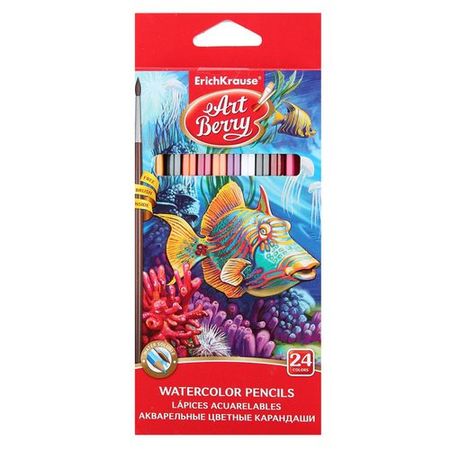 Акварельные карандаши шестигранные ArtBerry, 24 цвета, с кисточкой