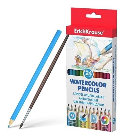 Акварельные карандаши шестигранные Erich Krause 24 цвета, с кисточкой
