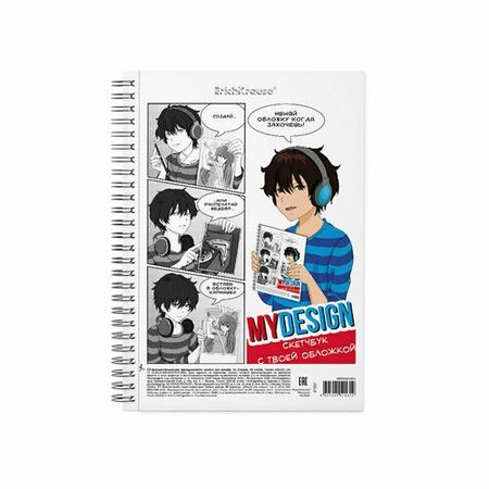Альбом для эскизов формата А5 (148х210 мм). Обложка-кармашек из высококачественного износостойкого прозрачного пластика, в который можно вставить свою обложку. Информационный вкладыш с инструкцией. В блоке 40 листов. Бумага плотностью 120 г/м2. Белизна бумаги — 100%. Тип скрепления — спираль
