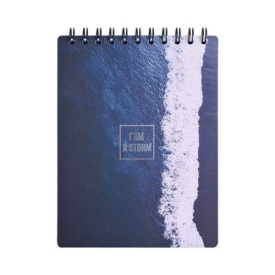 Альбом для рисования Be Smart из коллекции «Storm» А5 формата (156х207 мм) на спирали сверху с морским дизайном, выражающим бунтарскую природу человека.Верхняя часть обложки — мягкий картон с ламинацией, тиснением фольгой и цветной печатью с внутренней стороны; нижняя часть — плотный переплетный картон.Внутренний блок на 45 нелинованных листов — из высококачественной белой бумаги плотностью 190 г/м2.