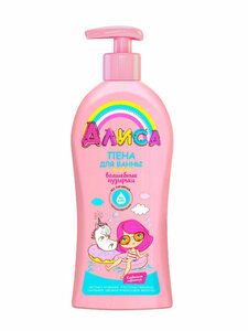 Пена для ванны "Алиса"Волшебные пузырьки Внешний вид: гелеобразная текстура светло-бежевого цвета с легким, освежающим фруктовым запахом.Специальные особенности: Гипоалергенно, не содержит красителей , не содержит парабенов, натуральный уровень pH, клинически тестировано, без слез.Создайте пенное царство для вашей принцессы! Плотная густая пена с нежным клубничным ароматом превратит купание в веселое развлечение. Состав средства обогащен экстрактом клубники, протеинами пшеницы, пантенолом, овсяным и кокосовым молочком. Такой комплекс бережно защищает нежную кожу от сухости и раздражения.Результат: Защита нежной детсткой кожи от сухости и раздражений