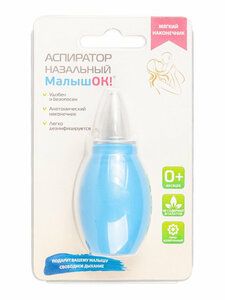 Аспиратор назальный с мягким наконечником малышок — для удаления слизистых выделений из носа младенцев и детей раннего возраста.Возраст: 0+.Предназначен для аспирации (отсасывания) выделений из носика малыша. в материалах аспиратора отсутствуют вредные для малыша фталаты! материал наконечника — гипоаллергенный поливинлхлорид. эргономичная форма для безопасного использования произведено с учетом анатомических особенностей детского организмаАспиратор снабжен наконечником специальной формы.Гладкий, без заусенцев наконечник анатомической формы не позволит родителям ввести его глубже необходимого и не доставит дискомфорта малышу.Материал наконечника — гипоаллергенный поливинилхлорид.Объем баллона аспираторов рассчитан на такое отрицательное давление (силу отсасывания), которое не повредит слизистую и не распространит инфекцию.Преимущество мягкого наконечника из ПВХ оценит любая мама, ведь теперь пользоваться аспиратором стало еще безопаснее.