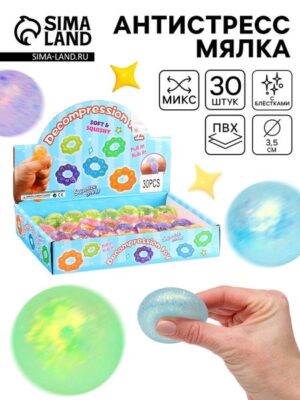 Антистресс-игрушка «Космос» — это отличный способ расслабиться и поднять настроение. Игрушка наполнена блёстками, что делает её идеальной для снятия напряжения.ОсобенностиНаполнение — яркие блёстки.Компактный размер игрушки — 3,5 × 3,5 см.Игрушку можно мять и сжимать, она быстро возвращается в первоначальный вид.В шоубоксе 30 игрушек, что позволяет выбрать любимый цвет или поделиться с друзьями.Подходит для детей от 3 лет.Польза для развитияМялка «Космос» не только помогает справляться со стрессом, но и развивает мелкую моторику у детей. Мягкие мялки легко сжимаются в руке, помогая сосредоточиться и расслабиться. Её можно использовать дома, в дороге или на работе, чтобы быстро снять напряжение и поднять настроение.