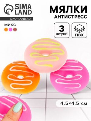 Антистресс игрушка — мялка «Пончик», набор 3 шт., МИКС