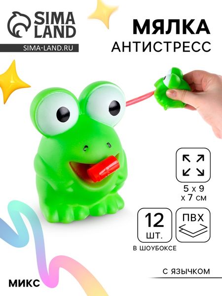 Антистресс-игрушка «Звери» — это отличный способ расслабиться и поднять настроение. Эластичная и упругая поверхность приятно мнется в руках, развивая мелкую моторику и тактильные ощущения.ОсобенностиИгрушка не содержит наполнителя, что делает её лёгкой и надёжной для детских игр.При сжатии игрушка выпячивает длинный язычок, вызывая улыбку и удивление.Компактный размер игрушки — 5 × 7 см.Игрушку можно мять и сжимать, она быстро возвращается в первоначальный вид.В шоубоксе 12 игрушек, что позволяет выбрать любимый цвет или поделиться с друзьями.Польза для развитияМялка «Звери» не только помогает справляться со стрессом, но и развивает мелкую моторику у детей. Мягкие мялки легко сжимаются в руке, помогая сосредоточиться и расслабиться. Её можно использовать дома, в дороге или на работе, чтобы быстро снять напряжение и поднять настроение.