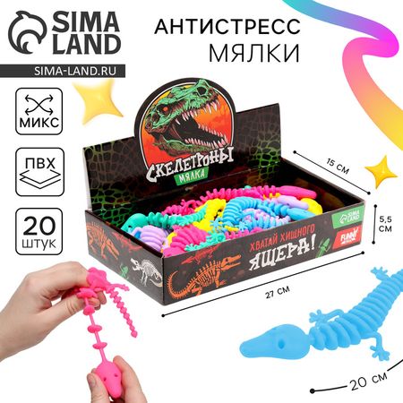 Мялка «Скелет ящера» — это яркая и приятная на ощупь игрушка-антистресс, которая станет отличным спутником для детей и взрослых. Мягкая и упругая, она помогает снять напряжение, успокоиться и поднять настроение. Мялка станет любимым аксессуаром в повседневной жизни.ОсобенностиИзготовлена из мягкого и безопасного материала ПВХ, приятного на ощупь.Компактный размер игрушки — 20 × 3 см.Легко сжимается и быстро восстанавливает форму, обеспечивая долгий срок службы.В шоубоксе 20 игрушек, что позволяет выбрать любимый цвет или поделиться с друзьями.Польза для развитияИгрушка-антистресс не только помогает справляться с эмоциями, но и развивает мелкую моторику у детей. Мягкие мялки легко сжимаются в руке, помогая сосредоточиться и расслабиться. Её можно использовать дома, в дороге или на работе, чтобы быстро снять напряжение и поднять настроение.