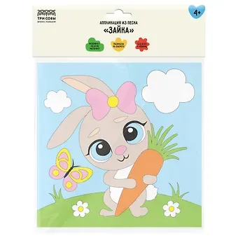 Аппликация из песка ТРИ СОВЫ «Зайка», с раскраской, пакет с европодвесом