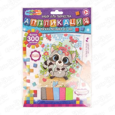 Аппликация мягкая мозаика из эва МультиАрт Енот на цветочной поляне более 17х23см 300дет с 3лет