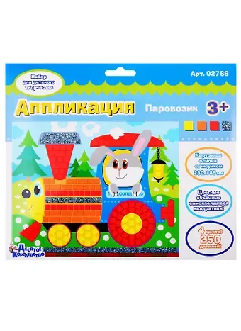 Развивайте творческие способности и мелкую моторику рук ребёнка с самоклеящейся аппликацией «Паровозик» от «Десятого королевства»! Состав: • картонная основа с рисунком забавного дракона (185 х 230 мм) • самоклеящиеся квадратики – 250 шт., 4 цветов (7 х 7 мм)