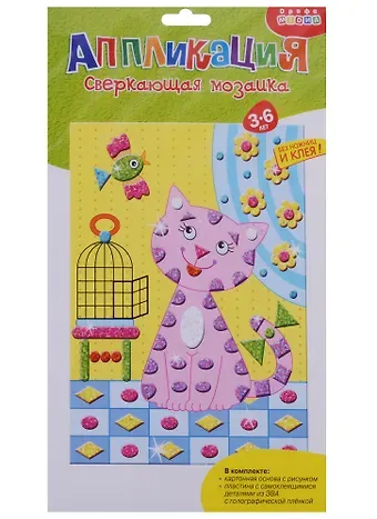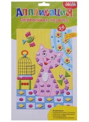 Праздничная и яркая аппликация, состоящая из красочных деталей, отличающихся по форме и размерам. Готовое изделие эффектно переливается всеми цветами радуги, благодаря покрытию деталей мозаики голографической плёнкой, придающей им необыкновенный блеск.