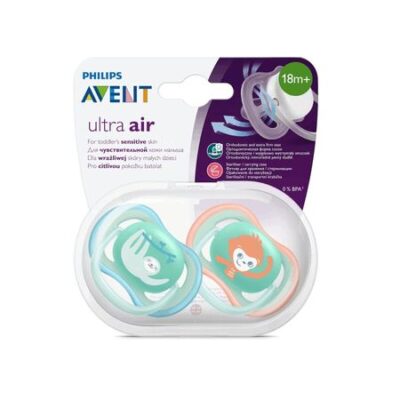 Успокойте своего малыша с помощью пустышки, которая позволяет коже дышать и поддерживает здоровое развитие полости рта. Пустышка ultra air 18 мес.+ имеет большие вентиляционные отверстия, поддерживающие мягкость и сухость чувствительной кожи, а также сверхплотную соску для растущих зубов и десен. Особенности: Дополнительная вентиляция Большие отверстия для воздуха бережно проветривают кожу малыша, обеспечивая ее мягкость и сухость. Легкий нагубник скругленной формыПустышка ultra air обеспечивает максимальный комфорт благодаря легкому нагубнику и скругленным краям. Ортодонтическая сверхплотная соска Соска симметричной формы создана с учетом формы неба, зубов и десен. Она очень плотная и не мешает развитию полости рта. Приятная на ощупь соска Пустышка ultra air с приятной на ощупь соской создана для легкого и комфортного использования. Простая стерилизация и хранение Дорожный футляр ultra air выполняет функцию стерилизатора — вам просто нужно добавить воды и положить его в микроволновую печь. Пустышка вновь будет чистой перед следующим использованием. Характеристики: В комплект входят: Пустышка ultra air: 2 шт. Аксессуары в комплекте Футляр для стерилизации/хранения: Да Безопасность Кольцо-держатель для безопасности: Да Без бисфенола-А: Да Гигиеничность Легко чистится: Да Можно стерилизовать: Да Можно мыть в посудомоечной машине: Да * Не устойчива к укусам! Изготовлена из более плотного силикона, чем пустышка ultra air 6–18 мес. * В целях соблюдения гигиены меняйте пустышки каждые 4 недели использования.