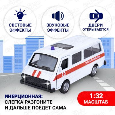 Автобус КРУТЫЕ ТАЧКИ Скорая помощь инерционный световые звуковые эффекты металлический
