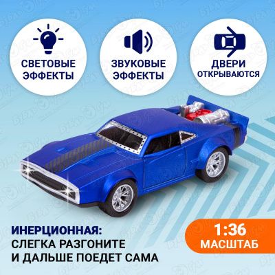 Автомобиль спорткар kings toy инерционный световые звуковые эффекты металлический синий 1:36