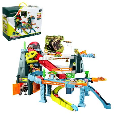 Автотрек «Динозавр», звуковые эффекты, эффект дыма. Гоночный трек с динозавром превращает обычную игру в настоящее приключение. Набор включает множество интересных элементов для создания захватывающего маршрута. <strong> Особенности</strong> <ul> <li> Извергающийся вулкан, туннель в форме головы динозавра и вращающийся птерозавр создают уникальную атмосферу.</li> <li> Подъемный трек, дорога с обрывом и поворотный участок добавляют динамики и сложности гонкам.</li> <li> Мост, тоннель и уличные знаки помогают организовать правильное и увлекательное движение.</li> <li> Гараж (или зона «плена») и парковка на 8 машинок служат местами старта, финиша или временного хранения.</li> <li> Длина трассы составляет 190 см, что позволяет разместить все элементы без потери качества игры.</li> <li> Звуковые и световые эффекты, а также эффект дыма делают гонки реалистичными и захватывающими.</li> <li> Требуется 3 батарейки типа AA (не входят в комплект).</li> <li> Материал машинок — прочный пластик, безопасный для детей от 3 лет.</li> </ul> Каждый элемент трассы продуман для максимального удовольствия от игры. Ребенок сможет придумывать сценарии гонок и экспериментировать с расположением объектов, создавая новые маршруты снова и снова.
