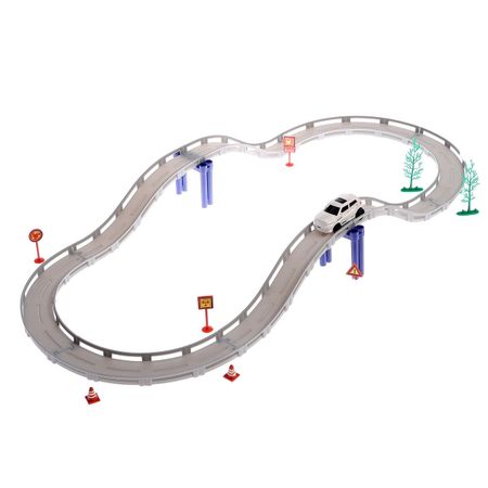 Автотрек «Граффити», в наборе 1 машина и дорожные знаки, длина трассы 180 см, работает от батареек, 20 деталей. Детский автотрек «Граффити» станет хорошим подарком для мальчика, который увлекается машинами и гоночными трассами. Ребенок соберет трассу и окунется в мир невероятных заездов на скорость! <b> Особенности автотрека «Граффити»</b> <ul> <li> Набор состоит из 20 деталей, кольцевая трасса собирается из 10 элементов.</li> <li> Все детали выполнены из качественного пластика.</li> <li> Размер автомобиля: 7,6 × 3,5 × 3,5 см.</li> <li> Ширина дороги — 4,4 см.</li> <li> Для автомобильной трассы подойдут машинки масштабом 1:64.</li> <li> В набор входят элементы окружения: дорожные знаки, деревья и конусы.</li> <li> Машинка работает от 1 батарейки АА (нет в комплекте).</li> <li> Предназначен для детей старше 3 лет.</li> </ul>