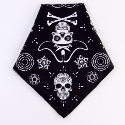 Бандана «Пират», 50×50 см. Бандана — одна из самых универсальных деталей гардероба. Используйте ее как карнавальный аксессуар или для повседневного образа. Бандану можно надеть на шею, запястье или украсить ею рюкзак. Повязанная на лицо вещь прекрасно защитит дыхательные органы от пыли. Такой платок станет незаменимой деталью при занятиях спортом. И, конечно, он отлично выполнит свою основную функцию: оградит голову от солнечных лучей.