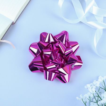 Бант — звезда №14, розовый, металлик. Каждый подарок должен быть уникальным и выделяться из массы других своей оригинальностью. Большой выбор бантов дает возможность мастерить подарок на любой случай жизни. Такое украшение всегда актуально, вне зависимости от того, кому предназначен сюрприз — мужчине или женщине, ребенку или людям преклонного возраста. Самое распространенное применение — упаковка всевозможных коробок от самых маленьких до достаточно больших размеров. Кроме того, банты можно использовать как декоративное украшение интерьера. .
