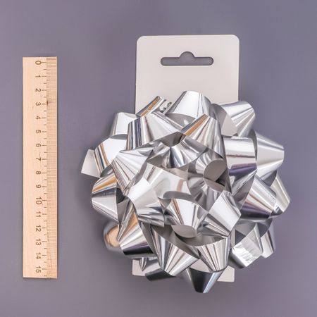 Бант — звезда № 14, серебристый, металлик. Каждый подарок должен быть уникальным и выделяться из массы других своей оригинальностью. Большой выбор бантов дает возможность мастерить подарок на любой случай жизни. Такое украшение всегда актуально, вне зависимости от того, кому предназначен сюрприз — мужчине или женщине, ребенку или людям преклонного возраста. Самое распространенное применение — упаковка всевозможных коробок от самых маленьких до достаточно больших размеров. Кроме того, банты можно использовать как декоративное украшение интерьера. .