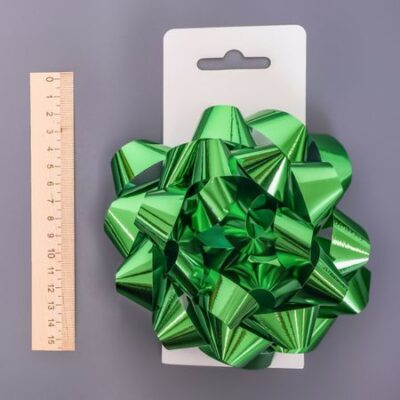 Бант — звезда № 14, зеленый, металлик. Каждый подарок должен быть уникальным и выделяться из массы других своей оригинальностью. Большой выбор бантов дает возможность мастерить подарок на любой случай жизни. Такое украшение всегда актуально, вне зависимости от того, кому предназначен сюрприз — мужчине или женщине, ребенку или людям преклонного возраста. Самое распространенное применение — упаковка всевозможных коробок от самых маленьких до достаточно больших размеров. Кроме того, банты можно использовать как декоративное украшение интерьера. .