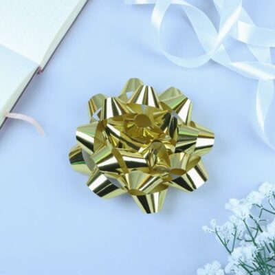 Бант — звезда № 14, золотой, металлик. Каждый подарок должен быть уникальным и выделяться из массы других своей оригинальностью. Большой выбор бантов дает возможность мастерить подарок на любой случай жизни. Такое украшение всегда актуально, вне зависимости от того, кому предназначен сюрприз — мужчине или женщине, ребенку или людям преклонного возраста. Самое распространенное применение — упаковка всевозможных коробок от самых маленьких до достаточно больших размеров. Кроме того, банты можно использовать как декоративное украшение интерьера. .