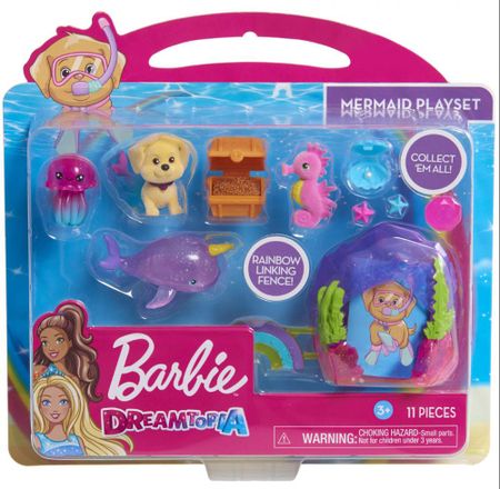 Bring the magic of Dreamtopia to life with this enchanting Barbie Mermaid playset. Your child can dive into a world of imagination and adventure with Barbie and her underwater friends. The set includes a beautiful mermaid doll with colorful hair and a sparkly tail, as well as a variety of accessories to help your child create their own underwater kingdom. The mermaids tail lights up and plays music, adding an extra element of fun to playtime. Your child can also use the included comb to style Barbies hair and create endless mermaid-inspired looks. Made with high-quality materials, this playset is built to last and provide endless hours of imaginative play. Give your child the gift of magic and wonder with this delightful Barbie Mermaid playset.