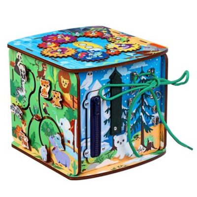 Бизиборд «Играем со зверятами». Бизиборд «Играем со зверятами» — отличный вариант полезного и увлекательного досуга малыша. Суть игры с бизибордом заключается в том, что ребенок будет учиться новому не через принудительные занятия, а за счет любознательности. Поэтому игрушка поможет малышу играть, параллельно оттачивая базовые навыки и способности. Бизиборд состоит из 10 различных элементов, которые нужно крутить, открывать, закрывать и защелкивать. <b> Игрушка способствует развитию следующих навыков:</b> <ul> <li> Мелкая моторика. Малыш разовьет мелкую моторику рук, взаимодействуя с элементами бизиборда.</li> <li> Логическое мышление. Головоломки на игрушке развивают интеллект.</li> <li> Воображение. Дети развивают фантазию, представляя, как работают различные механизмы в реальной жизни.</li> <li> Творческие способности. Непоседы будут проявлять фантазию, придумывая собственные игры и занятия с бизибордом.</li> </ul> Бизиборд «Играем со зверятами» станет отличным подарком для детей от 3 лет.
