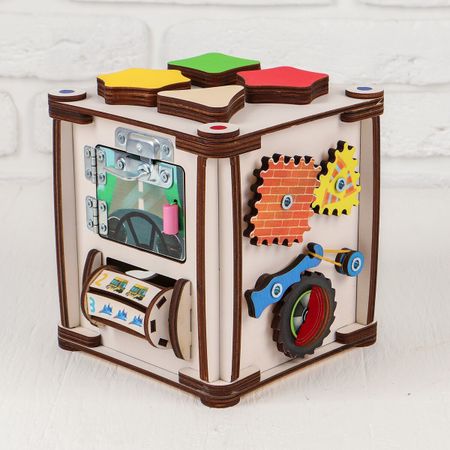 Бизикуб «Транспорт» со светом, 13 подвижных элементов. Деревянный развивающий куб с 13 интерактивными элементами и подсветкой станет увлекательным инструментом для познания мира. Эта игрушка сочетает в себе функциональность и образовательную ценность, помогая детям осваивать базовые навыки через игру. <ul> <li> Развитие мелкой моторики и логики: Вращающиеся валики, застежки-молнии, щеколды и выключатели учат ребенка управляться с повседневными предметами, развивая координацию и самостоятельность.</li> <li> Многофункциональность и безопасность: Каждый элемент куба выполнен из экологически чистого дерева, что делает его безопасным для детей от 2 лет. Игрушка прошла тестирование педагогами и родителями, подтверждая свою эффективность.</li> <li> Интерактивная подсветка: Световые элементы добавляют игровому процессу дополнительный интерес, стимулируя любознательность и внимание ребенка.</li> <li> Универсальность: Подходит для мальчиков, а также для различных праздников и поводов. Это не просто игрушка, а полноценный развивающий центр.</li> </ul> Играя с этим кубом, ребенок не только развлекается, но и учится завязывать шнурки, застегивать молнии и открывать замки. Такие навыки пригодятся в повседневной жизни, делая малыша более уверенным и самостоятельным.