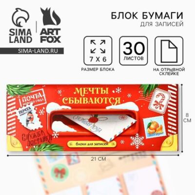 Блок для записей с отрывными листами, в открытке, 30 л. «Новый год: Сказочная почта». Блок для записи станет прекрасным подарком на праздник. <ul> <li> Обложка : мягкая ;</li> <li> Форма: прямоугольная ;</li> <li> Количество листов: 30 ;</li> <li> Тип скрепления: на отрывной склейке ;</li> <li> Состав: бумага, картон.</li> </ul>