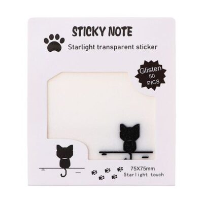 Блок с липким краем 75мм х 75мм 50л пластик прозрачные с блестками котик